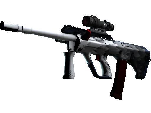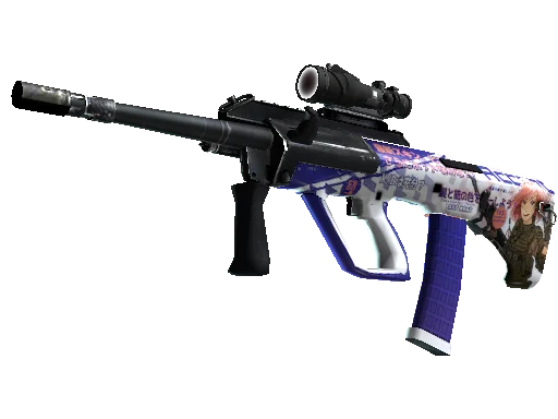 The AUG is a bullpup assault rifle available exclusively to the Counter-Terrorist team in CS2. Its modern, tactical design includes a built-in scope, giving it a futuristic military look and making it instantly recognizable. The weapon’s compact shape—thanks to the bullpup configuration—places the magazine behind the trigger, allowing a longer barrel in a shorter body.